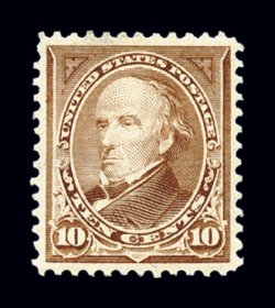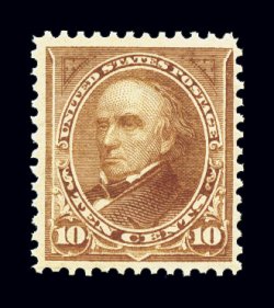 344 nh 282C image#282C, 10c Brown, Ty. I, unusually well centered for this always difficult stamp, sumptuously rich color and a sharp impression, pristine o.g., n.h., extremely fine; 2002 PF certificate. (Image) $500.00
