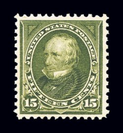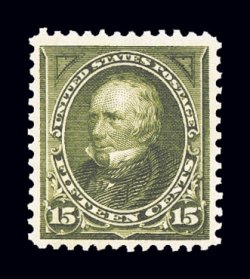347 nh 284 image#284, 15c Olive green, brilliant "post office" fresh mint single, with sumptuously rich color and a crisp detailed impression on immaculate paper, extraordinarily well centered, pristine o.g., n.h., extremely fine; a very challenging stamp to find in this gem never hinged condition; 2004 PF certificate. (Image) $400.00