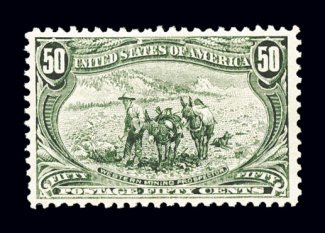 360 og 291 image#291, 50c Trans-Mississippi, well centered and margined, warm color, o.g., lightly hinged, very fine; 2001 PF certificate. (Image) $700.00