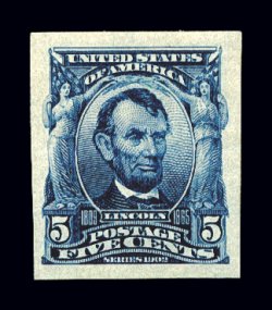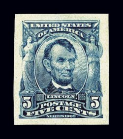 442 og 315 image#315, 5c Blue imperforate, extra-large balanced margins all around, deep vibrant color and a razor-sharp impression, o.g., lightly hinged, extremely fine; 2002 PSE certificate. (Image) $240.00