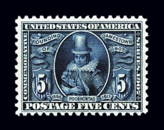 459 nh 330 image#330, 5c Jamestown, uncharacteristically well centered and margined, deep intense color and impression, o.g., n.h., choice very fine; 1999 PF certificate. (Image) $325.00