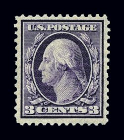 508 nh 359 image#359, 3c Deep violet on bluish paper, an especially fresh and choice mint example of this scarce value, possessing rich luxuriant color and a highly detailed impression, much better centering and larger margins than normally encountered, pristine o.g., never hinged, very fine; collector's of premium quality never hinged stamps will immediately recognize the difficulty of filling this space, as a review of our records shows this to be among the finest quality never hinged Three Cent Bluish Papers we have ever offered; 2003 PF certificate. (Image) $4,250.00