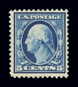 501 og 355 image#355, 5c Blue coil, perf. 12 vert., exceedingly well centered within uncharacteristically large margins, rich bright color, full o.g. which is just slightly disturbed from a hinge removal, extremely fine; 2004 PSE certificate. (Image) $230.00