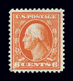 512 og 362 image#362, 6c Red orange on bluish paper, brilliantly rich color and an uncommonly crisp impression, well centered, o.g., lightly hinged, a very fine example of this scarce bluish paper; 2002 PF certificate. (Image) $1,500.00