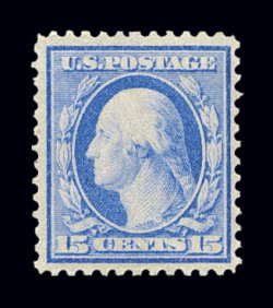 515 nh 366 image#366, 15c Pale ultramarine on bluish paper, a wonderfully fresh mint single, possessing gorgeous bright color and an unusually clean impression, well centered and margined, unblemished o.g., never hinged, extremely fine; 2001 PF certificate. (Image) $3,100.00