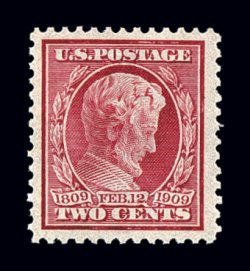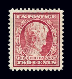 517 nh 369 image#369, 2c Lincoln on bluish paper, very well centered within extravagantly large margins, strong rich color and impression, o.g., n.h., extremely fine; an especially large-margined example; 2002 PF certificate. (Image) $425.00