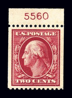 531 nh 386 image#386, 2c Carmine coil, perf. 12 horiz., a striking mint single, with plate no. 5560 in the top margin tab, incredibly well centered within wide margins, radiant rich color and an unusually crisp impression, o.g., n.h., an extremely fine gem; any certified #386 single is very scarce, but to find one in this stellar quality, in addition to being a plate number single, is a truly rare occurrence; 1996 PF certificate. (Image) $180.00