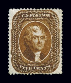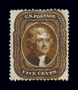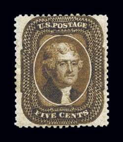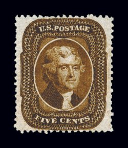 42 ng 30 image#30, 5c Orange brown, Ty. II, unused, extraordinarily well centered, eye-arresting color that is incredibly deep and luxuriant, extremely fine; an especially handsome unused example; 1988 PF certificate; ex-Floyd. (Image) $550.00