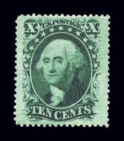 51 nh 35 image#35, 10c Green, Ty. V, exceedingly well centered within incredibly wide margins, wonderfully rich color and a deeply etched impression, clean o.g., never hinged, extremely fine; select quality never hinged examples are very elusive and highly desirable; 1987 and 1995 PF certificates. (Image) for hinged $275.00