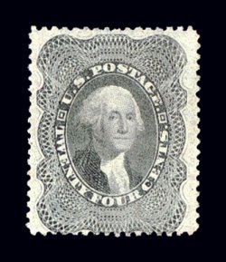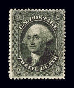 56 og 36b image#36b, 12c Black, plate III, attractive and choice mint single, with striking "jet" black color and a deeply etched impression, quite well centered, especially when one considers how narrowly spaced and poorly centered these generally come, full o.g., only the barest trace of hinging, very fine; photocopy of a 1979 PF certificate for a block of four, this being the bottom right stamp. (Image) $800.00