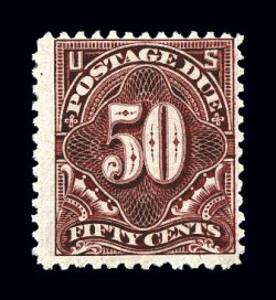 914 nh J37 image#J37, 50c Deep claret, deep rich color, o.g., never hinged, a fine example of this scarce high value; 2005 APS certificate. (Image) $3,750.00