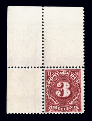 915 nh J40 image#J40, 3c Deep claret, impressive top left corner margin single with huge top selvage, brilliantly fresh, deep rich color, well centered, o.g., n.h., choice very fine; 2002 PF certificate. (Image) $200.00