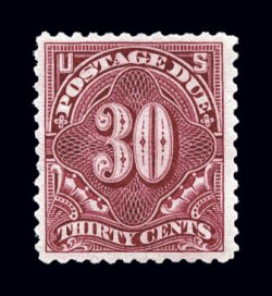 917 nh J43 image#J43, 30c Deep claret, well centered, strong color and impression, o.g., n.h., very fine; 2004 PF certificate. (Image) $1,400.00