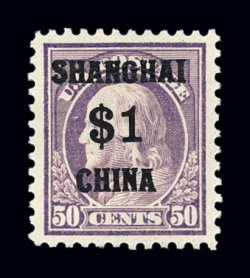 945 nh K15 image#K15, $1.00 on 50c Light violet, deep intense color and an especially strong impression, unblemished o.g., n.h. (quite scarce thus), nearly very fine. (Image) $1,200.00