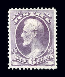 951 og O28 image#O28, 6c Justice, marvelously well centered within large margins, bright fresh color, o.g., h.r., extremely fine and quite handsome; 2000 PF certificate. (Image) $230.00