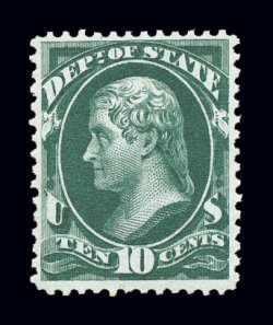 953 nh O62 image#O62, 10c State, brilliantly fresh and crisp, nicely centered, pristine o.g., never hinged, nearly very fine; photocopy of a 1996 PF certificate for a block of six from which this stamp was taken. (Image) for hinged $190.00