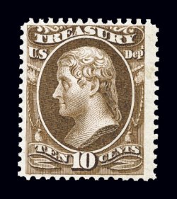 955 nh O77 image#O77, 10c Treasury, deep rich color and a clean impression, o.g., never hinged, very fine; photocopy of a 2004 PF certificate for a pair, this being the top stamp. (Image) for hinged $150.00