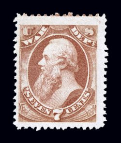 956 nh O87 image#O87, 7c War, exceptionally fresh, with lovely rich color on clean white paper, well centered within incredibly large margins, o.g., n.h., very fine; 2004 PSE certificate. (Image) for hinged $130.00