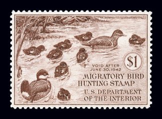1000 nh RW8 image#RW8, 1941 $1.00 Brown carmine, precisely centered, with wonderfully balanced margins all around, strong rich color, fresh clean o.g., n.h., an extremely fine gem. (Image) $225.00