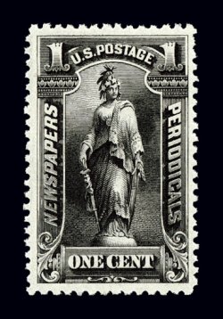 982 nh PR102 image#PR102, 1c Black, especially deep color and impression, well centered and margined, o.g., n.h., very fine. (Image) $375.00