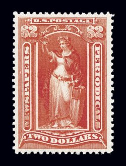 985 nh PR120 image#PR120, $2.00 Scarlet, pristine mint example, brilliantly fresh, well centered, immaculate o.g., n.h., choice very fine; photocopy of a 2004 PF certificate for a block of six, this being the top center stamp. (Image) $50.00