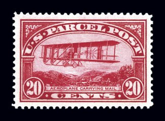 988 nh Q8 image#Q8, 20c Parcel Post, an exceptional quality mint single, being marvelously well centered within uncharacteristically large margins, strong rich color and impression, o.g., n.h., extremely fine; a gem example of this popular stamp; 1997 and 2003 PF certificates. (Image) $325.00