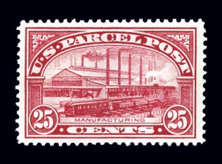 990 nh Q9 image#Q9, 25c Parcel Post, excellent centering within uncommonly wide margins, wonderfully bright and fresh, pristine o.g., n.h., extremely fine; an especially attractive and choice stamp; 1999 PF certificate. (Image) $180.00