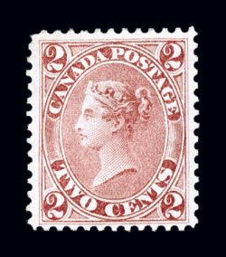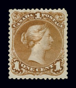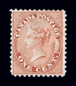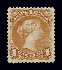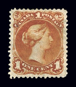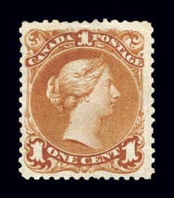 1087 og 22 image#22, 1868 1c Brown red, excellent centering within uncharacteristically large margins, strong color and impression, full o.g., minor h.r., accompanying certificate mentions small corner crease at bottom left which is nothing more than a turned corner perf., otherwise extremely fine; 2003 PF certificate (Unitrade C$1,600.00). (Image) $475.00