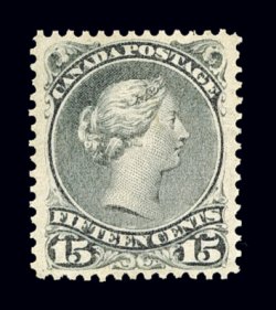 1095 og 29 image#29, 1868 15c Gray violet, a striking mint example possessing immense margins that are not at all commonly found on this issue, also exceptionally well centered within these remarkable borders, very fresh with strong rich color and sharp impression, plus possessing full o.g. and quite lightly hinged, extremely fine; a very scarce jumbo in this gem condition (Unitrade C$250.00). (Image) $67.50