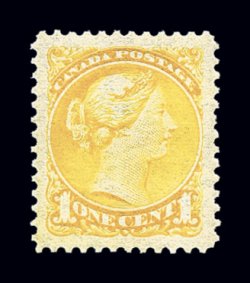 1098 nh 35 image#35, 1870 1c Yellow, Ottawa printing, marvelously well centered single amid extra-large margins all around, exceedingly fresh with brilliant color, full o.g., never hinged, extremely fine; not at all common in this gem condition (Unitrade C$180.00). (Image) $75.00