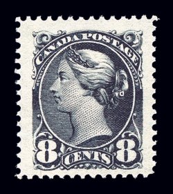 1104 nh 44 image#44, 1893 8c Violet black, well centered within huge margins, the size of which is almost never encountered on the Small Queen issues, rich fresh color and a clean impression, o.g., never hinged, extremely fine; a remarkably large-margined stamp; 2004 Greene Foundation certificate (Unitrade C$525.00). (Image) $200.00