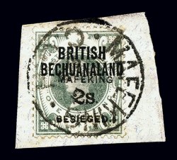 1189 O 177 image#177, 1900 "2s." on 1/- Green Mafeking surcharge, attractive single tied to piece by full "Mafeking/C.G.H/MY 11 1900" c.d.s., well centered, choice very fine; 1986 PF certificate (S.G. #16; £375). (Image) $400.00
