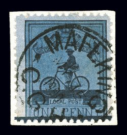 1191 O 179 image#179, 1900 3p Blue on blue Gen. Baden-Powell, narrow format, attractive used single with neat "Mafeking/C.G.H/MY 3 1900" c.d.s., strong color, exceptionally well centered, extremely fine (S.G. #20; £375). (Image) $400.00