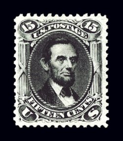 124 ng 108 image#108, 15c Black re-issue, an exceptionally handsome and desirable unused example of this popular re-issue, being wonderfully well centered within considerably larger margins than typically associated with this value, intense "jet" black color and a deeply etched impression on bright fresh paper, choice very fine; only 397 issued; 1985 PF certificate. (Image) $2,750.00