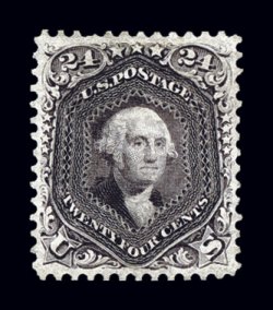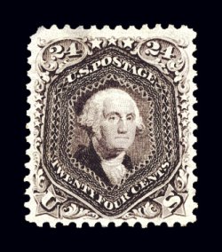 125 ng 109 image#109, 24c Deep violet re-issue, unused, remarkably well centered within balance margins, sumptuously rich color and a razor-sharp impression on fresh white paper, single nibbed perforation at top, still extremely fine and quite handsome; only 346 sold; 1968 PF certificate. (Image) $3,250.00
