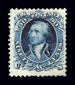 129 og 111 image#111, 90c Blue re-issue, dark rich color and impression on bright paper, fairly well centered, large part o.g., couple slightly blunted perfs. at right of little consequence, a fine and sound example of this rarity; only 317 issued; 1986 PF certificate. (Image) $7,000.00