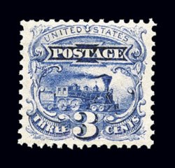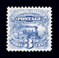 134 nh 114 image#114, 3c Ultramarine, deep vibrant color and a crisp detailed impression on bright white paper, uncommonly well centered within large margins, o.g., never hinged, choice very fine; an especially fresh and choice example; 2004 PF certificate. (Image) for hinged $350.00