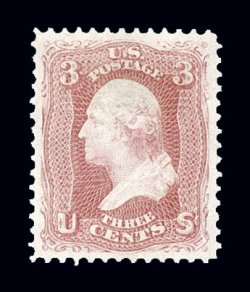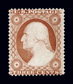 2 og 26 image#26, 3c Dull red, Ty. II, exceptionally well centered within much wider margins than typically found on this value, rich fresh color, clean o.g., lightly hinged, extremely fine. (Image) $75.00