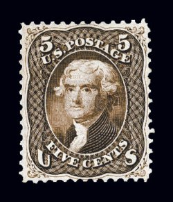 14 og 78 image#78, 24c Lilac, an extraordinary quality mint example of one of the most difficult values from the 1861-1868 series to find in premium condition, possessing several eye-appealing characteristics, including being remarkably well centered, with no portion of the design impinged by the perforations (a trait that is almost never found on this stamp), plus the stamp possesses a wonderful overall freshness, with brilliantly rich color and a deeply etched impression on immaculate white paper, full o.g., lightly hinged, extremely fine; a true condition rarity; 1988 PF certificate. (Image) $2,500.00