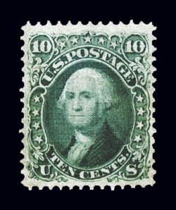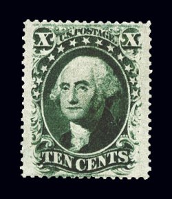 4 og 35 image#35, 10c Green, Ty. V, exceedingly well centered within extravagantly large margins, deep luxuriant color and an especially sharp impression, o.g., extremely fine and quite desirable. (Image) $275.00