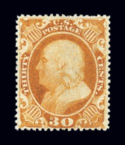 11 og 71 image#71, 30c Orange, exceptionally well centered, especially when compared to most existing mint copies of this value, strong bright color and a crisp impression, o.g., very fine; a particularly handsome example of this difficult and scarce stamp; 1990 PF certificate. (Image) $2,000.00