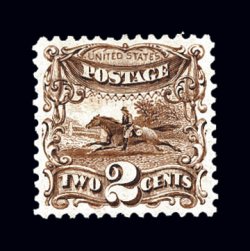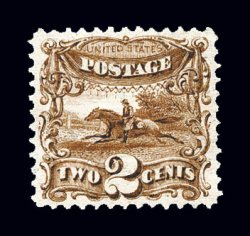 40 og 146 image#146, 2c Red brown, marvelously well centered within well balanced margins, rich bright color and a crisp impression, especially clean full o.g., faintly hinged, extremely fine; a surprisingly difficult stamp to find in this premium quality; 1998 PF certificate. (Image) $350.00