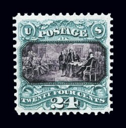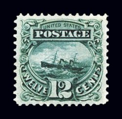 26 og 117 image#117, 12c Green, especially well centered within large balanced margins, strong rich color and a sharp detailed impression, full o.g. that has been a bit mount-disturbed, extremely fine; clear 1984 PF certificate. (Image) $2,600.00