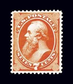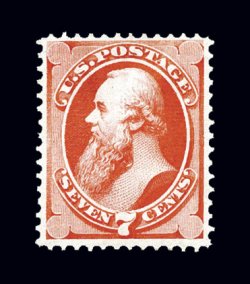 47 og 160 image#160, 7c Vermilion, incredibly fresh, with deep vivid color and a razor-sharp impression, uncommonly well centered and margined, o.g., lightly hinged, choice very fine; a premium quality stamp; 1990 PF certificate. (Image) $1,500.00
