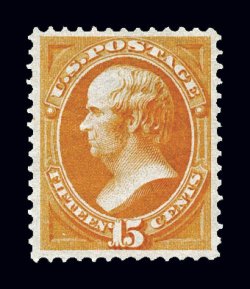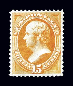 50 og 163 image#163, 15c Yellow orange, exceptionally well centered within large margins, bright color, full o.g., relatively lightly hinged, extremely fine; one of the most difficult values in the series to find in premium quality; 1993 PF certificate. (Image) $2,750.00