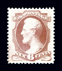 46 og 159 image#159, 6c Dull pink, a stunning mint single that certainly ranks among the finest #159's we have offered, as this gem possesses near perfect centering amid lavishly large margins, plus its color is wonderfully rich and fresh, uncommonly clean impression as well, full fresh o.g. with just a faint trace of hinging, an extremely fine gem in every regard; 1984 and 1988 PF certificates. (Image) $450.00