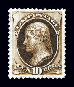 57 og 188 image#188, 10c Brown, with secret mark, well centered within huge margins for this difficult stamp, strong rich color and a well incised impression, full but somewhat disturbed o.g., extremely fine; clear 1991 and 1997 PF certificates. (Image) $2,500.00