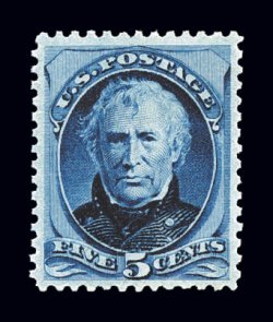 56 og 185 image#185, 5c Blue, brilliantly rich color and a crisp impression, uncommonly well centered, o.g., lightly hinged, extremely fine; 1993 PF certificate. (Image) $550.00