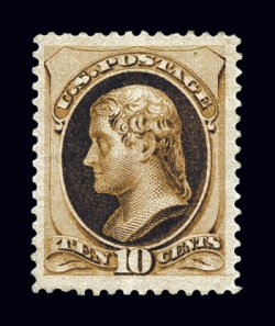 48 og 161 image#161, 10c Brown, an extraordinarily choice and desirable mint example of one of the most underrated Bank Note stamps, being in a remarkable state of preservation which belies its age, with stunning color that is especially rich and luxuriant, and an impression that is truly prooflike, uncharacteristically well centered within much larger margins than typically found, pristine o.g. that has been lightly hinged only once, extremely fine; an especially rare stamp in such outstanding condition; 1999 PF certificate. (Image) $1,200.00