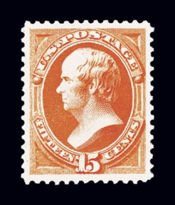 43 og 152 image#152, 15c Bright orange, a fabulous mint example that possesses an uncommon overall brilliance, with gorgeous vivid color and a highly detailed impression, outstanding centering within exceptionally large margins which are most uncharacteristic of this stamp, full o.g., lightly hinged, extremely fine; among the finest Fifteen Cent National Bank Notes we have ever offered in our auctions; 1998 PF certificate. (Image) $3,000.00